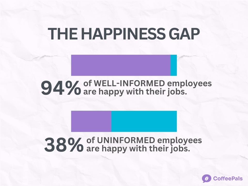- 94% of well-informed employees are happy with their jobs compared to only 38% among uninformed ones. (Staffbase, 2025)