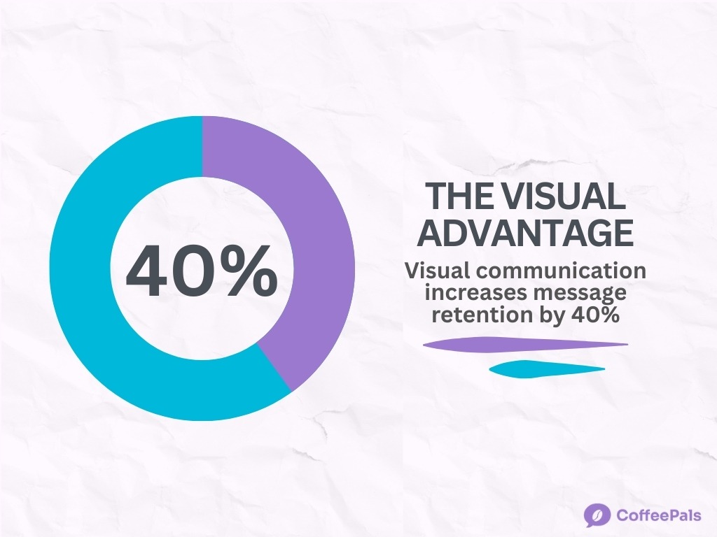 - Visual communication (infographics/charts) increases message retention by 40%. (Market.biz, 2025)